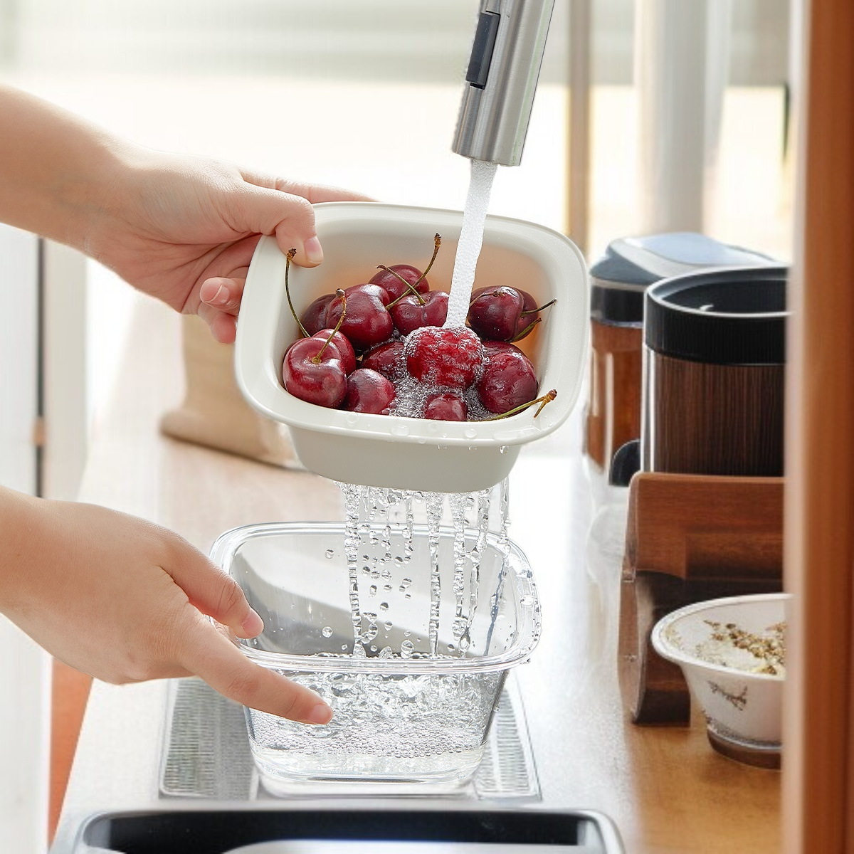 ● 이중 구조의 물빠짐 디자인으로 세척 후 물기가 빠르게 제거되어 위생적으로 사용할 수 있습니다.