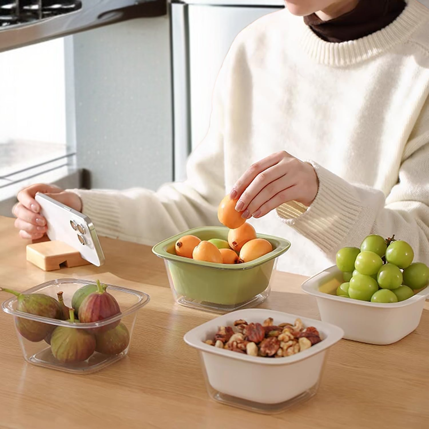 ● 다용도 접시로 토핑, 과일, 야채 등 다양한 식재료를 효과적으로 분리하여 조리와 보관에 편리함을 제공합니다.